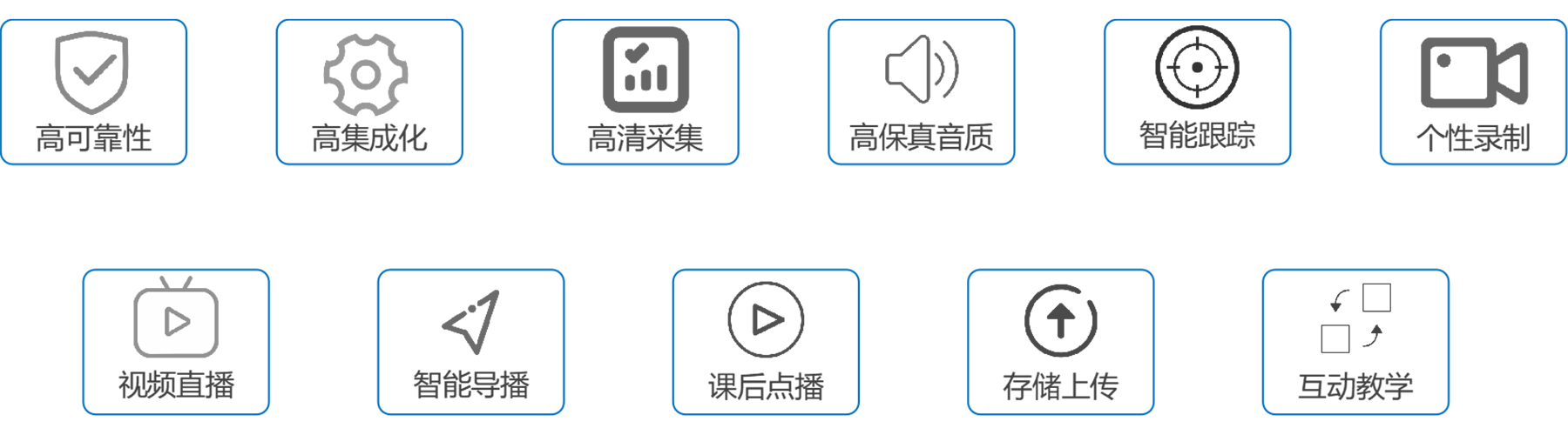 是通过摄像机和话筒将教室的视频(教师画面、学生画面、教学电脑PPT 、黑板)和音频(老师讲课语音、学生回答提问语音)采集后,录制生成视频文件存储下来,后期通过电脑登陆后点播视频文件播放或下载视频文件到本地播放,是一套实时的教学音视频存储记录设备。