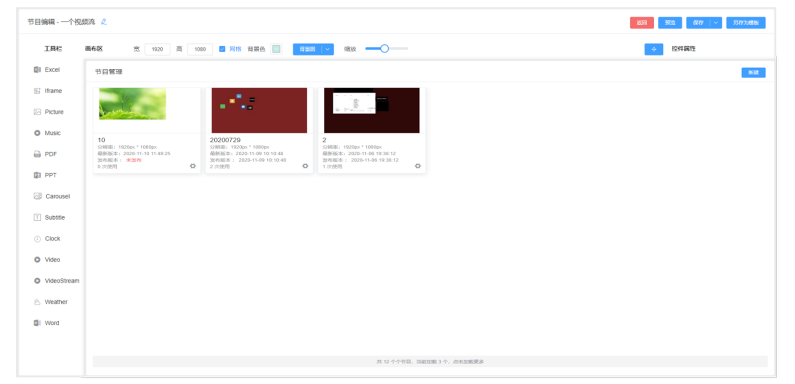 模版编辑功能是多媒体发布系统的核心重要功能,本系统所提供的模版编辑功能强大,使用灵活方便,用户自定义编辑,像使用PPT创建幻灯片一样方便和简单。