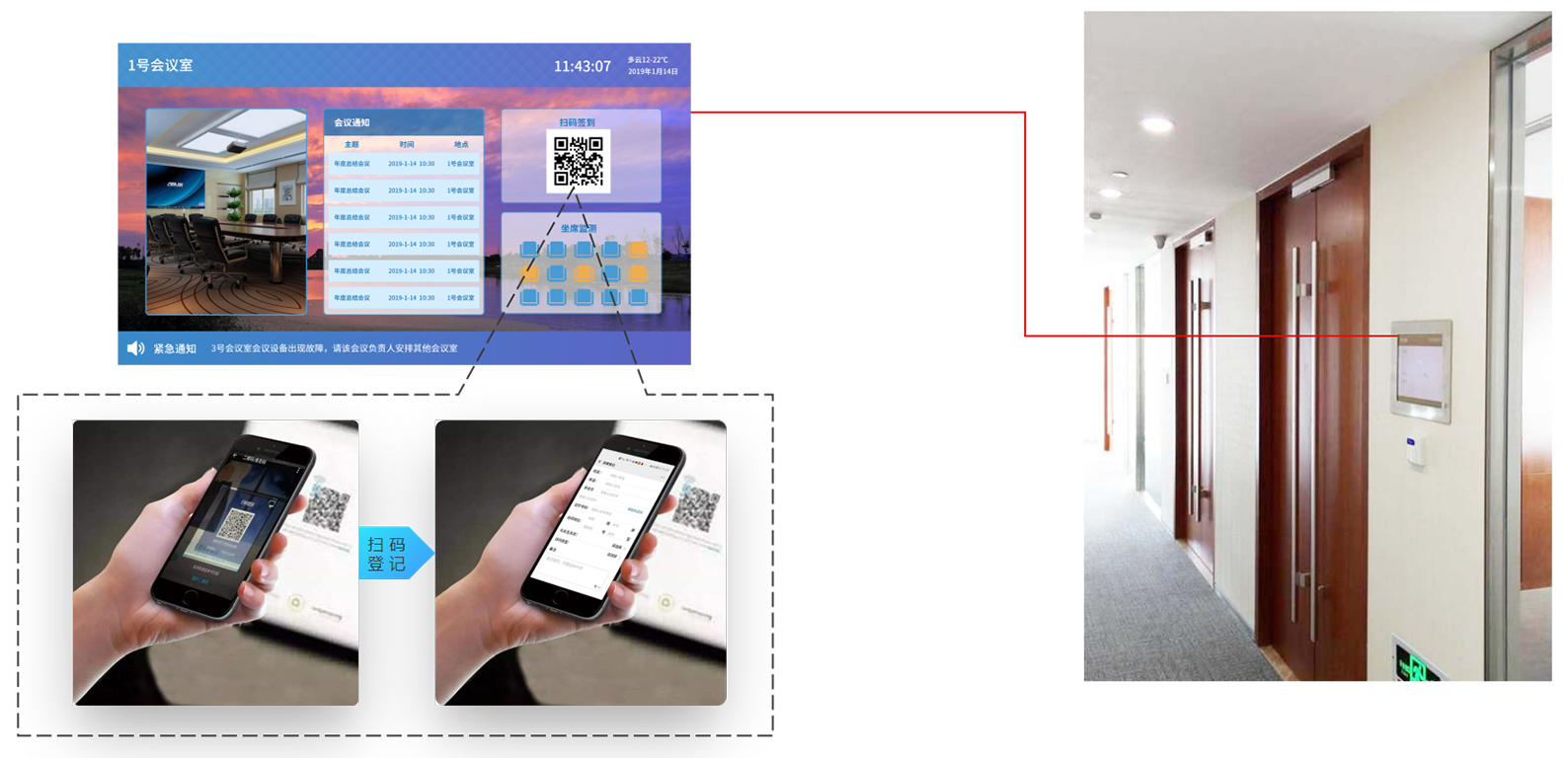 • 等候电梯或乘坐电梯的工作人员、领导、或特定性人员可发布引导信息、政府公告、通知
